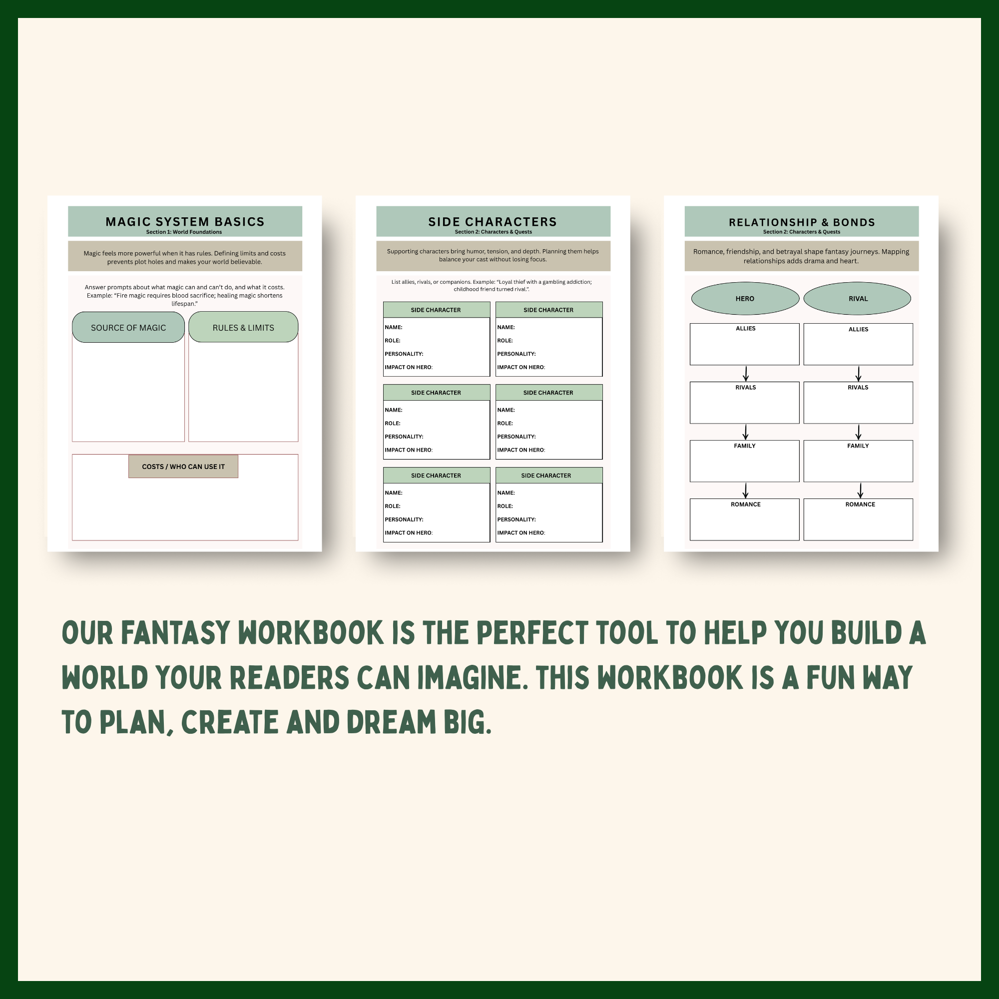 Step into your imagination and design the fantasy novel you’ve always dreamed of. This guided workbook takes you from worldbuilding and magic systems to unforgettable characters, epic quests, and powerful scenes — all with prompts, checklists, and creative trackers to keep your story clear, rich, and inspiring.